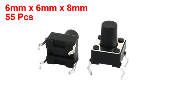 55Pcs Momentary Tact Tactile Push Button Switch 6x6x8mm 4-pin DIP
