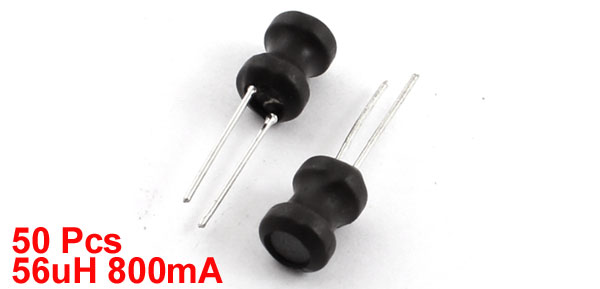 Product Name Radial Inductor Inductance 56uH Rating Current 800mA Tolerance 10% Body Size 6 x 8mm / 0.24" x 0.31"(D*H) Pin Size 0.55 x 14mm/ 0.22" x 0.55"(D*L) Lead Distance 2mm / 0.08" Color Black, Silver Tone Weight 41g Package Content 50Pcs(±2%) x Radial Inductor - Reviews