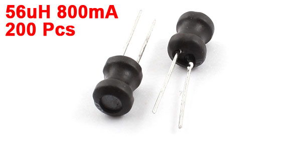 Product Name Radial Inductor Inductance 56uH Rating Current 800mA Tolerance 10% Body Size 6 x 8mm / 0.24" x 0.31"(D*H) Pin Size 0.55 x 14mm/ 0.22" x 0.55"(D*L) Lead Distance 2mm / 0.08" Color Black, Silver Tone Weight 192g Package Content 200Pcs(±2%) x Radial Inductor - Reviews