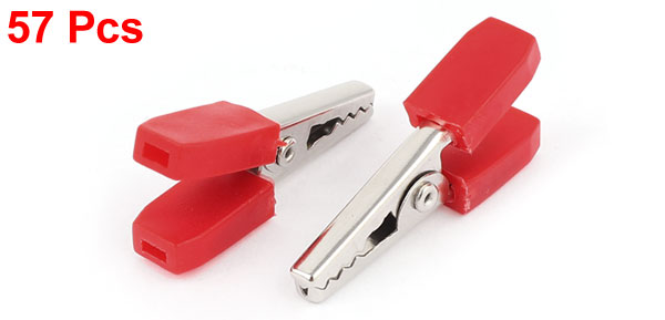 57Pcs Insulated Electrical Alligator Clip Test Lead Adapter Connector Red 34mm