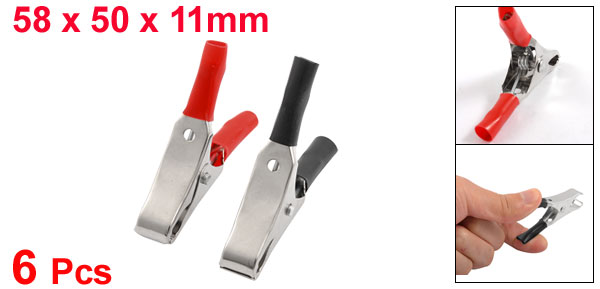 58mm Length Black Red Insulating Covered Test Probe Alligator Clips 6 Pcs