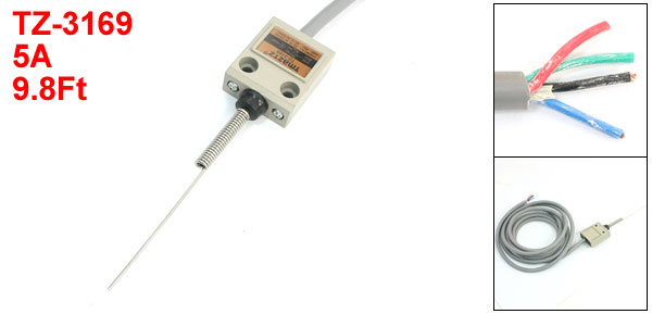 Product Name Limit Switch Model No. TZ-3169 Contact Configuration 1NO+1NC(SPDT) Actuator Type Coil Spring Plunger Action Type Momentary Ith 5A AC-15 250VAC 5A DC-12 30VDC 5A Waterproof Level IP67 Actuator Size 16 x 120mm/ 0.63" x 4.7"(D*L) Installing Hole Size 5.5mm/0.22"(Dia) Installing Hole Distance 2.5cm/1"(L*W)(Center to Center) Total Length 3Meter/9.8Ft Switch Size 6.5 x 3.8 x 1.6cm/2.6" x 1.5" x 0.63"(L*W*H) Material Plastic, Metal Main Color Gray Net Weight 340g Package Content 1 x Limit Switch - Reviews