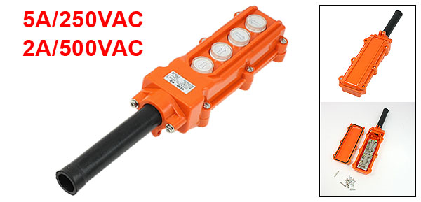 Product Name Hoist Pushbutton Switch Model No. COB-62 Feature Rainproof Type Push Buttons 4 Ways Contact Type Momentary Rated Voltage & Current AC 250V, 5A