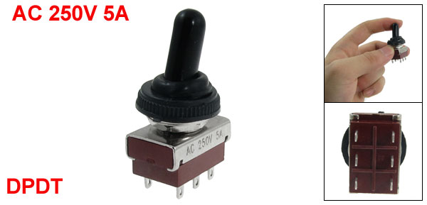 5A/250VAC ON/ON 2 Position DPDT 6 Pins Latching Toggle Switch w Waterproof Boot
