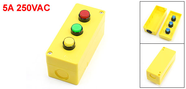 5A 250VAC SPDT Latching Red Green Yellow Three Button Pushbutton Station