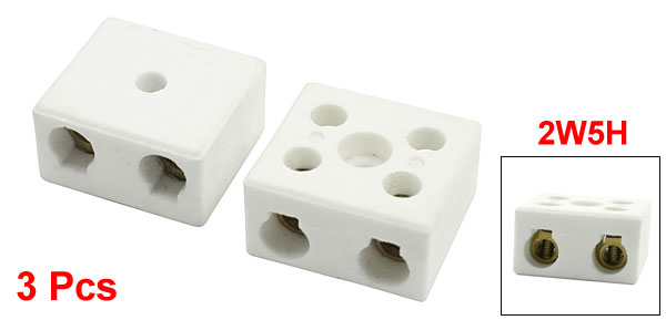 5A 2W5H 2 Way 5 Hole Connector Porcelain Ceramic Terminal Block 3 Pcs