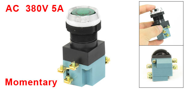5A 380V AC 1 NC 1 NO Momentary Push Button Switch Non Lock w 220V Green Light