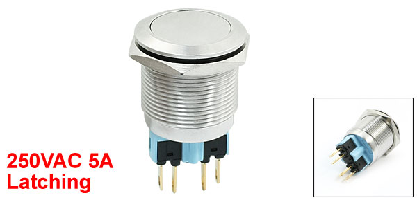 5A AC 250V 22mm Dia Panel Mounted Latching Push Button Switch NO NC
