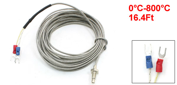Product Name Thermocouple Probe Type E Type Fork Pin Number 2 Temperature Range 0°C-800°C Sensor Size 4.5 x 10mm/ 0.18" x 0.39" (D*L) Mounting Thread Dia 6mm/0.24" External Shield Material Metal Cable Length(Approx.) 5M / 16.4Ft Weight 55g Package Content 1 x Thermocouple Probe - Reviews