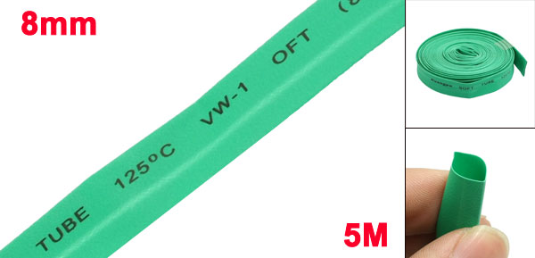 5M 8mm Dia Green Polyolefin Heat Shrinking Shrinkable Tubing Tubes