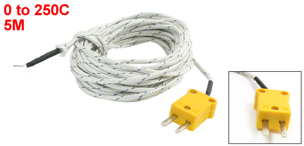 Product Name Thermocouple Transfer Type K Temperature 0 to 250C Total Length 5M/16.4Ft External Shield Nylon Braided Cable Shield Fork Terminal Spacing 5.3mm / 0.21" Color White, Yellow Weight 37g Package Content 1 Pcs x Thermocouple - Reviews