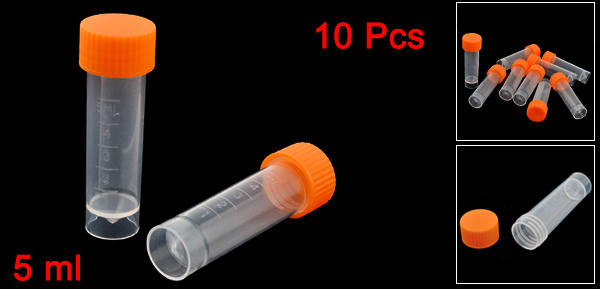 Product Name Plastic Vial Tube Material Plastic Capacity 5ml Overall Size (Approx.) 20 x 59mm/ 0.8" x 2.3" (D*L) Color Clear White,Orange Net Weight 38g Package Content 10 x Plastic Vial Tube