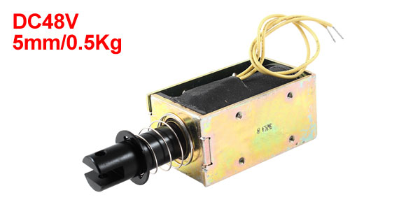 Product Name Solenoid Electromagnet Rated Voltage & Current DC48V 1.6A Power 76.8W Action Form Pull Type Stroke & Force 5mm/0.5Kg(1.1 LB)