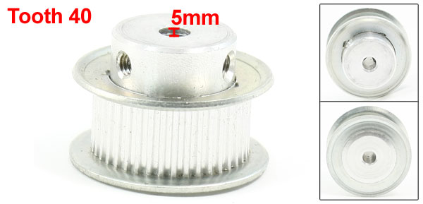 Product Name Timing Pulley Model L Material Aluminum Color Silver Tone Number of Tooth 40 Pitch 0.5mm/ 0.02" Side Lug Diameter 20mm/ 0.8"