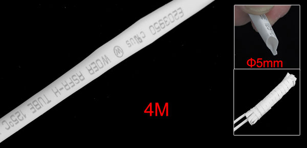 Details5mm Dia White Polyolefin Heat Shrinkable Tube 4M 13.1Ft  Product Name Heat Shrinkable Tube Material Polyolefin Rated Voltage 600V Temperature Level 125°C Flammability VW-1 Diameter 5mm / 0.197" (Before Shrinking) 2.5mm / 0.098" (After Shrinking) Shrink Ratio 2:1 Length (Approx.) 4M / 13.1Ft Color White Weight 30g Package Content 1 x Heat Shrinkable Tube
