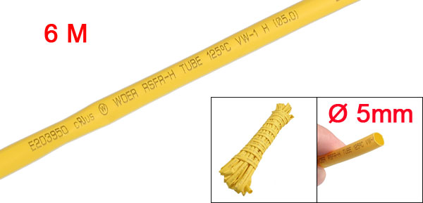 5mm Diameter Ratio 2:1 Heat Shrinking Shrinkable Tube Yellow 6M Long