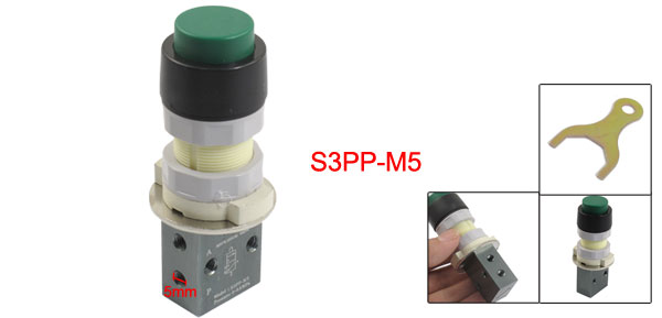 Product Name Mechanical Valve Model S3PP-M5 Operation Type Direct Acting Contact Type Momentary Working Medium Clear Air (40µm filteration) Port Type 3 Position Type 2 Pipe Thread Diameter 5mm / 0.197"(M5) Operating Temperature Range -5 ~ 60°C Working Pressure Range 0 ~ 0.8MPa Total Size(Approx) 3.6 x 2.8 x 8.6cm / 1.4"x 1.1"x 3.4" (L*W*H) Material Alloy Main Color Gray, Black, Green Net Weight 96g Package Content 1 x Mechanical Valve 1 x Small Fork - Reviews