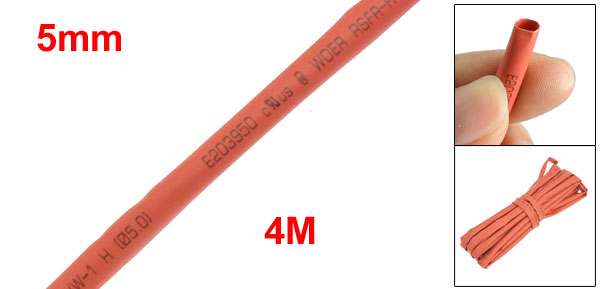 5mm Red Heat Shrinkable Tube Shrink Tubing 4m 13.1ft 2:1 Ratio