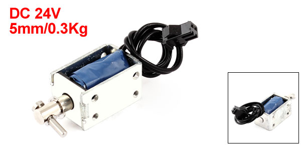 Product Name Solenoid Electromagnet Rated Voltage & Current DC24V 1.6A Power 38.4W Action Form Pull Type Stroke & Force 5mm/0.3Kg