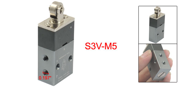 Product Name Mechanical Valve Model S3V-M5 Operation Type Direct Acting Contact Type Single Vertical Working Medium Clear Air (40µm filteration) Port Type 3 Position Type 2 Pipe Thread Diameter 5mm / 0.197"(M5) Operating Temperature Range -5 ~ 60°C Working Pressure Range 0 ~ 0.8MPa Total Size(Approx) 2.6 x 1.6 x 6.3cm / 1"x 0.6"x 2.5"(L*W*H) Main Color Gray, Black Material Alloy Net Weight 67g Package Content 1 x Mechanical Valve - Reviews