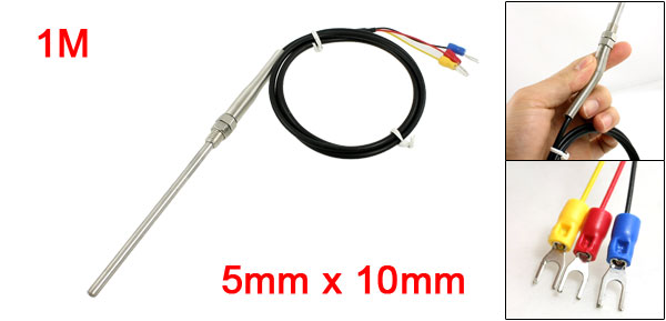 5mm x 10mm PT100 Type Temperature Sensor Earth Thermocouple Probe 1M
