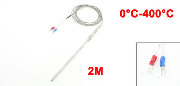 Product Name Thermocouple Probe Type K Type Fork Pin Number 2 Temperature Range 0°C-400°C Sensor Size 5 x 150mm/ 0.2" x 5.9" (D*L) Fork Pin Size 9 x 5mm/ 0.4" x 0.2"(L*W) External Shield Material Metal Total Length(Approx.) 2M / 6.6 Ft Color Silver Tone Weight 48g Package Content 1 x Thermocouple Probe - Reviews