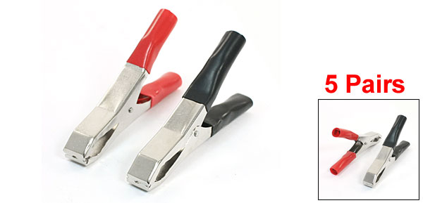 5Pairs 50A Black Red Insulated Boots Car Battery Alligator Clip Silver Tone