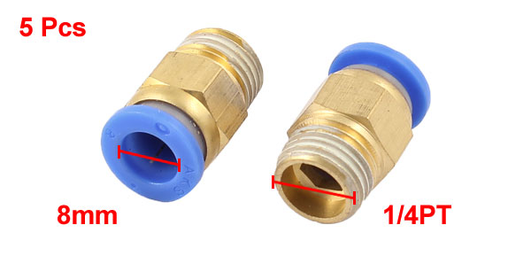 5Pcs 1/4 PT Male Threaded Straight Quick Push In Connect Tube Fitting OD 8mm