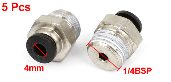 5Pcs 1/4BSP Male Thread 4mm Push In Joint Pneumatic Connector Quick Fittings