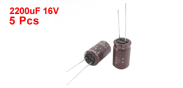 Product Name Electrolytic Capacitor Type Radial Maximum Temperature 105°C Voltage 16V Capacitance 2200uF Tolerance ±10% Size 12.5 x 20.5mm/0.5" x 0.8"(D*H) Lead Spacing 5mm/0.2" Lead Length 20mm/0.8" 25mm/1" External Material Aluminum Total Net Weight 20g Main Color Brown Package Content 5PCS x Electrolytic Capacitors - Reviews
