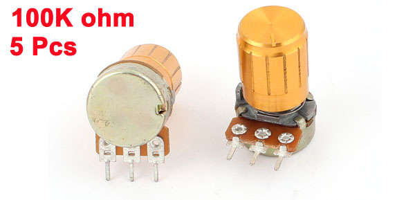 5pcs 100K OHM Linear Taper Rotary Potentiometer 100KB B100K Pot w Knobs