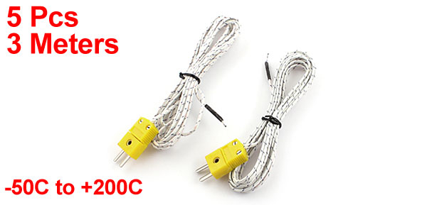 5Pcs 10ft K Type Temperature Control Thermocouple Sensor Wire -50C to +200C