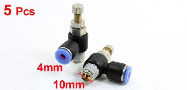 5Pcs 10mm Thread 4mm Push In Piping Speed Control Air Pneumatic Connector