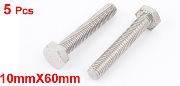 5pcs 10mmX60mm A2-70 Stainless Steel Full Thread Hex Cap Screw Bolt