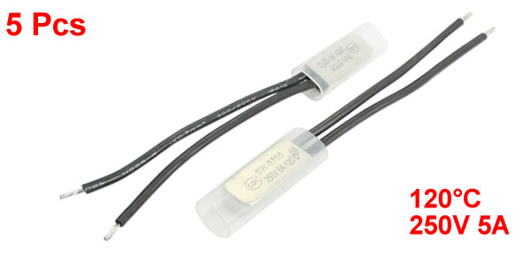 5Pcs 120C 250V 5A Dual Cable Circuit Cut Off Temperature Thermal Fuses