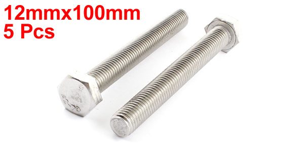 5pcs 12mmx100mm A2-70 Stainless Steel Full Thread Hex Cap Screw Bolt
