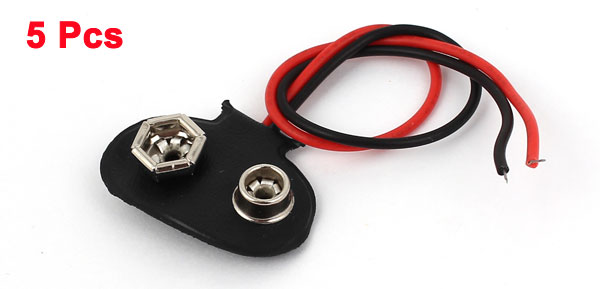 Main Color Black, Red Fit for 9V Battery(not included here) Net Weight 11g Country of Manufacture CHINA Package Content 5 x Battery Connector Cable Length 12.5cm/4.9" Material Plastic, Electric Parts, Faux Leather Size 26 x 19 x 5mm/1" x 0.75" x 0.2"(L*W*T) - Reviews