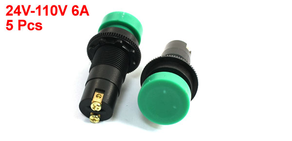 5Pcs 24V-110V 6A Green Protected Flat Head Pushbutton Switch for Machine Tool