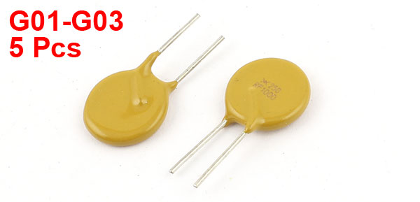 Product Name PPTC Resettable Fuse Max. Voltage 250V Max. Current 1A Disc Dia. 13mm/ 0.51" Pin Dia. 0.84mm/ 0.33" Pin Spacing 5.5mm/ 0.22" Total Size 27 x 13 x 2.5mm/1" x 0.51" x 0.1"(L*W*T) External Material Polymeric, Carbon Black, Metal Color Yellow, Silver Tone Net Weight 8g Package Content 5Pcs x PPTC Resettable Fuse - Reviews