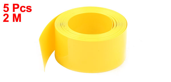 5Pcs 2Meters 17mm Width PVC Heat Shrink Wrap Tube Yellow for 1 x AA Battery