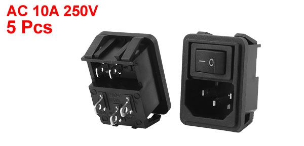 5Pcs 2Pin SPST On-Off Rocker Switch IEC320 C14 Inlet Power Socket AC 10A 250V
