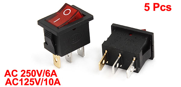 Product Name Waterproof Rocker Switches Model KCD1-1 Poles SPST(I/O) Terminals 3 Pin Lamp Color Red Rated AC 250V/6A, AC125V/10A Total Size 22 x 15 x 28mm/ 0.87" x 0.59" x 1.1"(L*W*T) Mounting Size 18 x 12mm/ 0.71" x 0.47"(L*W) Color Black, Red Material Plastic, Metal Weight 23g Package Content 5 x Waterproof Rocker Switches - Reviews