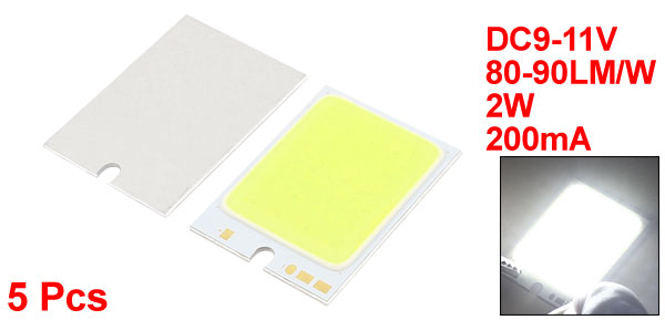 5pcs 2W DC9-11V 200mA 80-90LM/W White LED Light COB Lamp Bead Chip