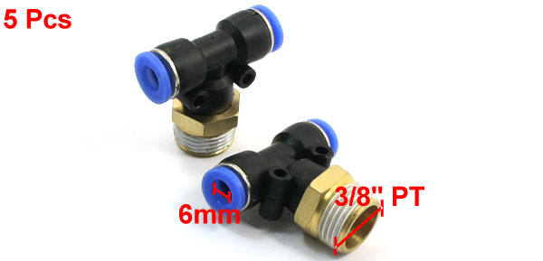 5pcs 3/8"PT Male Thread to 6mm Tube 3 Way T Shape Quick Coupler Joint