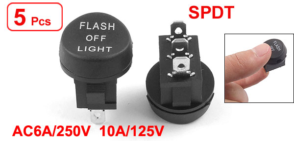 5pcs 3 Pin SPDT On/Off/On FLASH/OFF/Light 3 Position Snap In Boat Rocker Switch