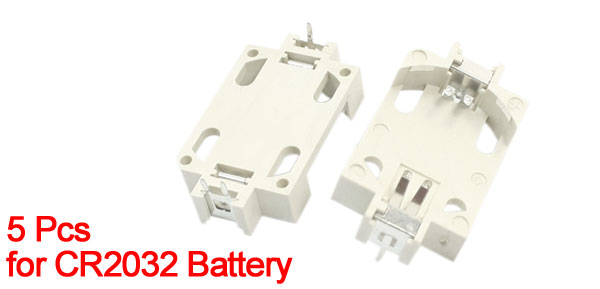 Product Name Cell Button Battery Holder Fit for for CR2032 Battery (Not Included Here) Material Plastic, Metal Body Size 27 x 16mm/ 1" x 0.6"(L*W) Pin Length 3mm/0.1" Color White, Silver Tone Net Weight 8g Package Content 5 Pcs x Cell Button Battery Holder - Reviews
