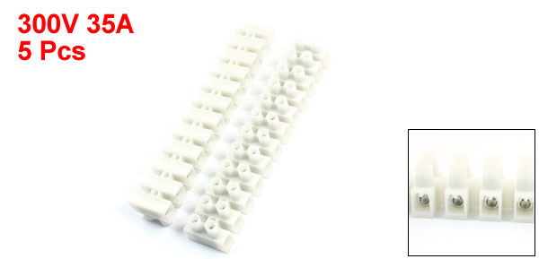 Product Name Barrier Terminal Block Material Metal, Plastic Rated Value 300V 35A Poles 12 Positions Dual Row for Cable 1.5mm² Size 14.2 x 2.5 x 2cm/ 5.6" x 1" x 0.8" (L*W*T) Color White Net Weight 240g Package Content 5 x Barrier Terminal Block - Reviews