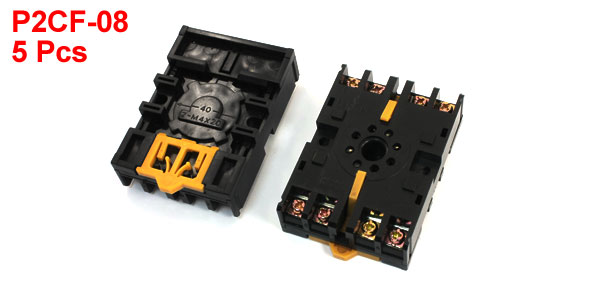 Details5Pcs 35mm DIN Rail Mounting 8 Screw Terminal 10A 250VAC Socket Base P2CF-08  Product Name Relay Socket Base Model P2CF-08 Rated Load 10A 250VAC Pin Quantity 8 Total Size(Approx) 70 x 50 x 19mm/2.8" x 2" x 0.75"(L*W*H) Mounting Size M4X20 External Material Plastic, Metal Main Color Black Weight 283g Package Content 5 x Relay Socket Base