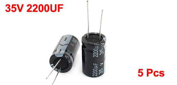 Product Name Electrolytic Capacitor Type Radial Maximum Temperature 105°C Voltage 35V Capacitance 2200uF Size 16 x 26mm/0.63 x1"(D*H) Lead Space 8mm Lead Length 25mm/1", 21mm/0.8" External Material Aluminum Total Net Weight 20g Main Color Black Package Content 5PCS x Electrolytic Capacitors - Reviews