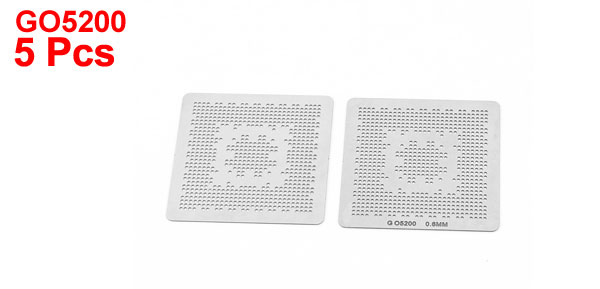 Product Name BGA Reballing Stencil Material Steel Fit for GO5200 Size 35 x 35mm Pitch 0.6mm Weight 11g Package Content 5 x BGA Reballing Stencil - Reviews